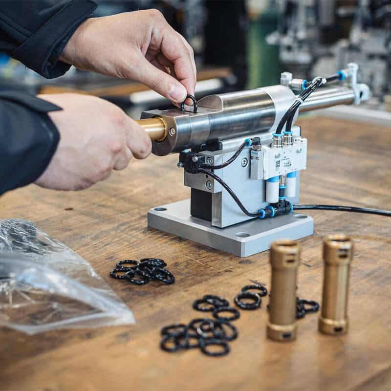 Zwei Handbewegungen, ein pneumatischer Hub – sicher montiert! Als rein pneumatische Vorrichtung montiert die OI 10 spielend einfach und rasend schnell Dichtringe in innenliegende Nuten, Hinterschnitte und Absätze. Auch schwer zugängliche Montagesituationen sind kein Problem.